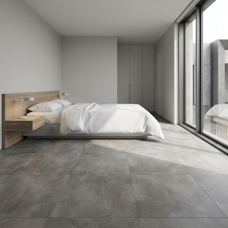 Pour un sol effet béton gris, élégant et résolument contemporain.