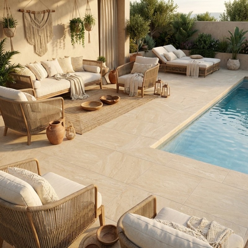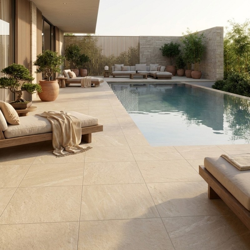 Sublimez votre terrasse grâce à la dalle sur plots EREBOR Beige 60x60x2 cm effet pierre antidérapant R11. Cette dalle haut de gamme vous permettra de créer un espace extérieur luxueux et accueillant, parfaitement en harmonie avec votre maison.