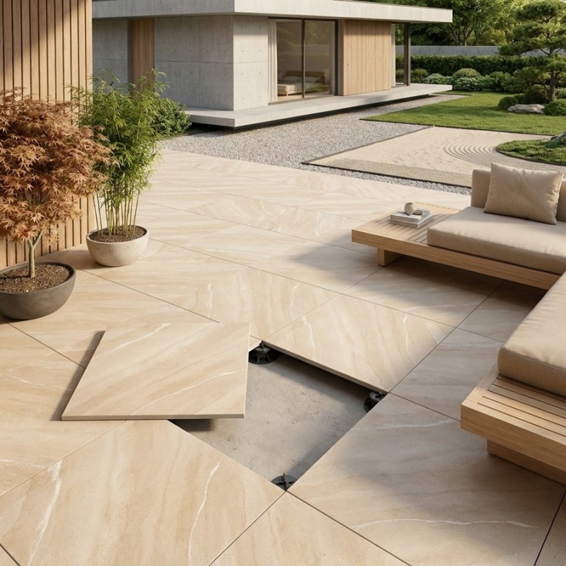 Dalle sur Plots VALAR BEIGE 60x60x2 cm : une terrasse au charme méditerranéen