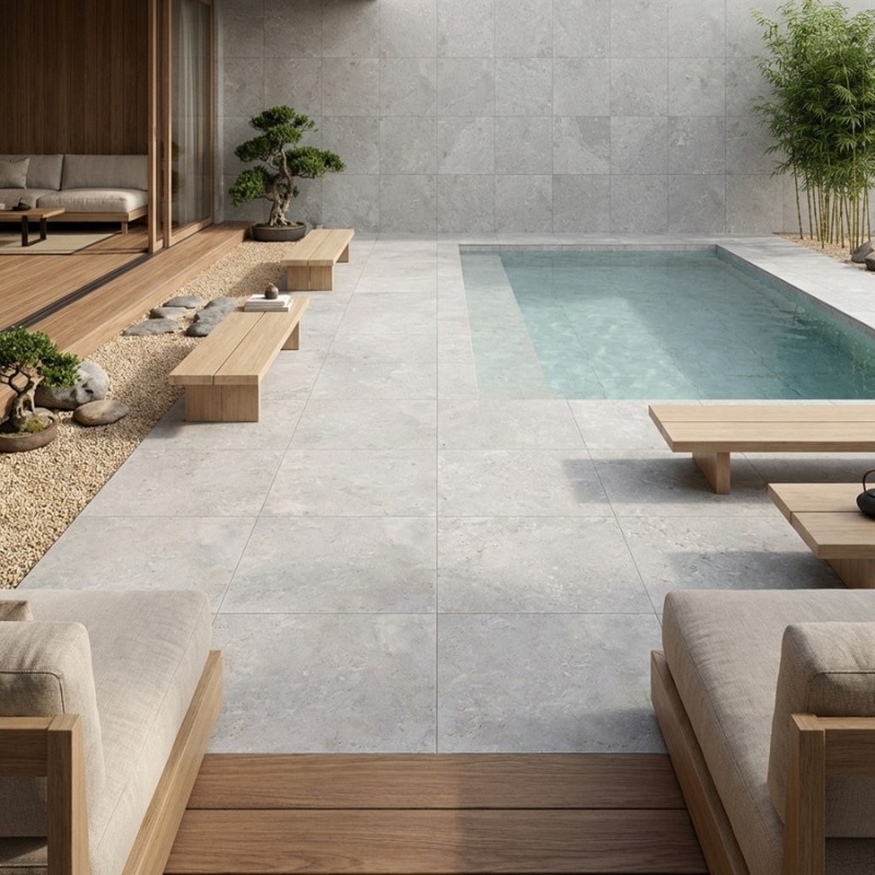 Dalle sur plots MONTPELLIER PERLA 60x60x2 cm effet pierre antidérapant R11