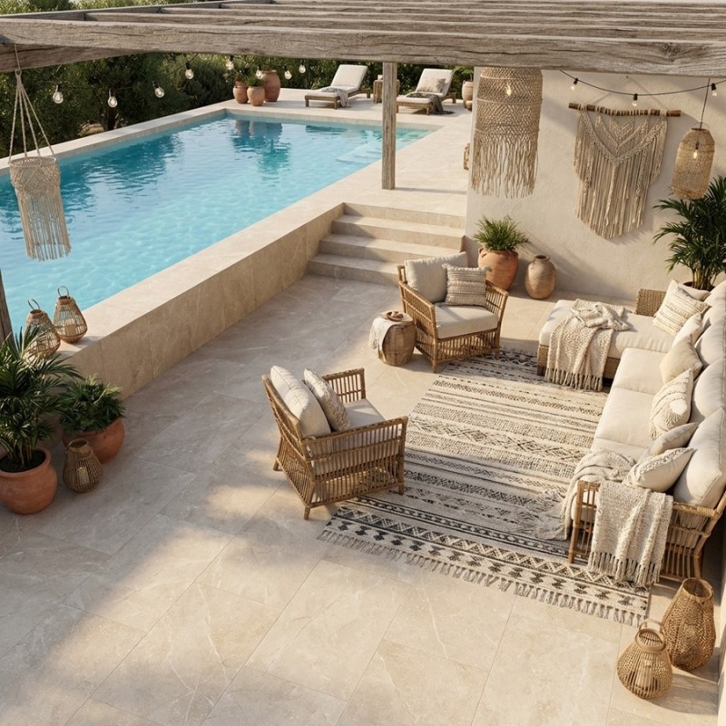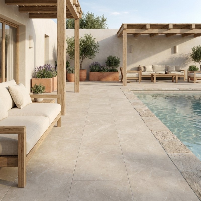 Optez pour la dalle terrasse AMALFI effet pierre de couleur beige pour sublimer votre espace extérieur avec une touche de modernité intemporelle. Laissez-vous séduire par cette solution haut de gamme qui allie qualité, esthétisme et durabilité, pour des moments de détente inoubliables en plein air.