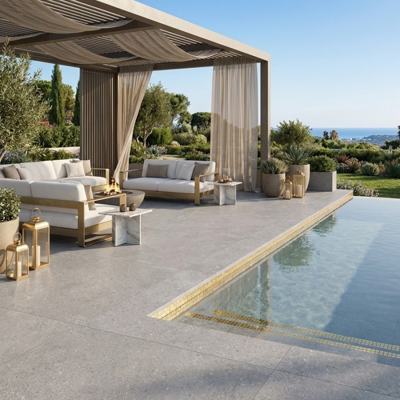 Les DORSET PLATA 120x120 cm se caractérisent par leur apparence sophistiquée et contemporaine. Ces grandes dalles présentent une finition gris argenté élégante qui s'intègre parfaitement dans des environnements modernes. Leur grand format et leur couleur neutre les rendent idéales pour créer des espaces ouverts et lumineux, qu'il s'agisse de terrasses, de patios ou de jardins.