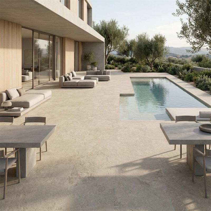 Avec son effet pierre naturel et sa teinte sable douce, la dalle sur plots PORTLAND Sand Mate 60x90 apporte une touche lumineuse et élégante à la terrasse. Elle est idéale pour un aménagement en dalle sur plots terrasse et s’intègre parfaitement dans l’univers dalle effet pierre.