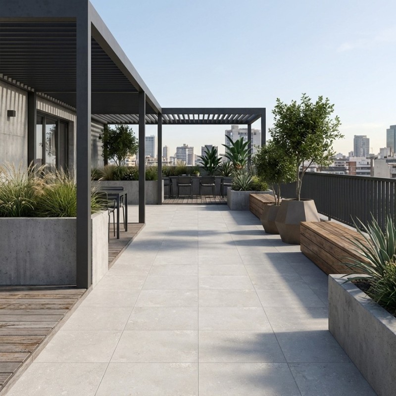Avec son format 60x60 pratique et sa teinte gris perle, la dalle sur plots MONTPELLIER Perla 60x60 est idéale pour une terrasse moderne au rendu pierre élégant. Elle convient parfaitement à un aménagement en dalle sur plots terrasse et s’intègre naturellement dans l’univers dalle effet pierre. Antidérapante, elle se pose sur plots terrasse et existe aussi en format 60x90.