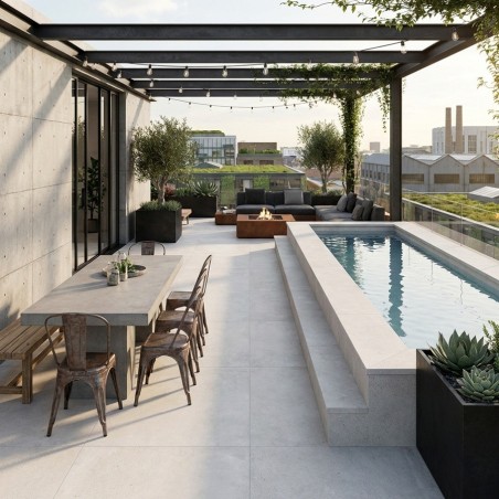 Sobre et intemporelle, la dalle sur plots PORTLAND Gris 60x60 est idéale pour une terrasse moderne au rendu pierre élégant. Elle s’intègre parfaitement dans un projet de dalle sur plots terrasse et dans la sélection dalle effet pierre. Antidérapante R11, elle se pose sur plots terrasse et existe aussi en 90x90, ainsi qu’en Perla, Marfil et Blanco.