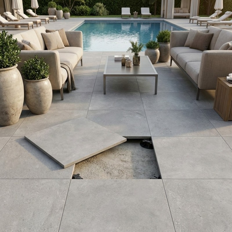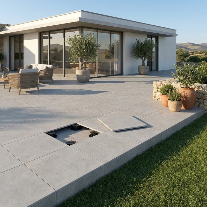 Avec des dalles sur plots en grès cérame de 1,8 cm à 2 cm, vous avez l’assurance d’une terrasse sur plot fiable, robuste et durable, répondant aux exigences d’une pose professionnelle et offrant un confort d’utilisation optimal sur le long terme.