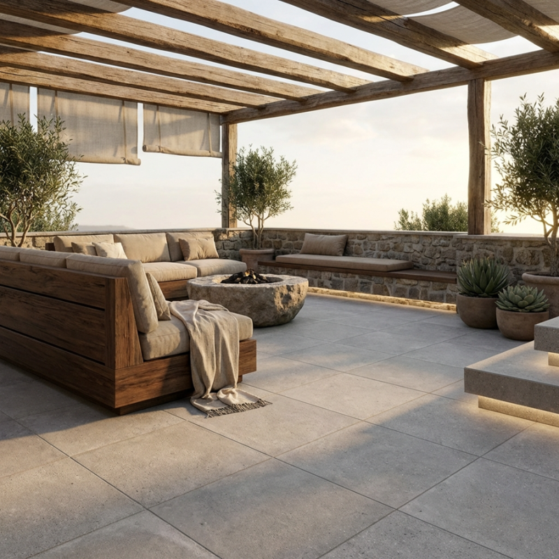 Avec son aspect pierre claire et son format 90x90 cm, la dalle Portalnd Perla est parfaite pour une terrasse moderne. Sa surface structurée antidérapante R11 assure une excellente sécurité. Pose rapide sur plots sans colle. Durable, résistante aux intempéries et facile à entretenir, elle allie fonctionnalité et esthétisme naturel.