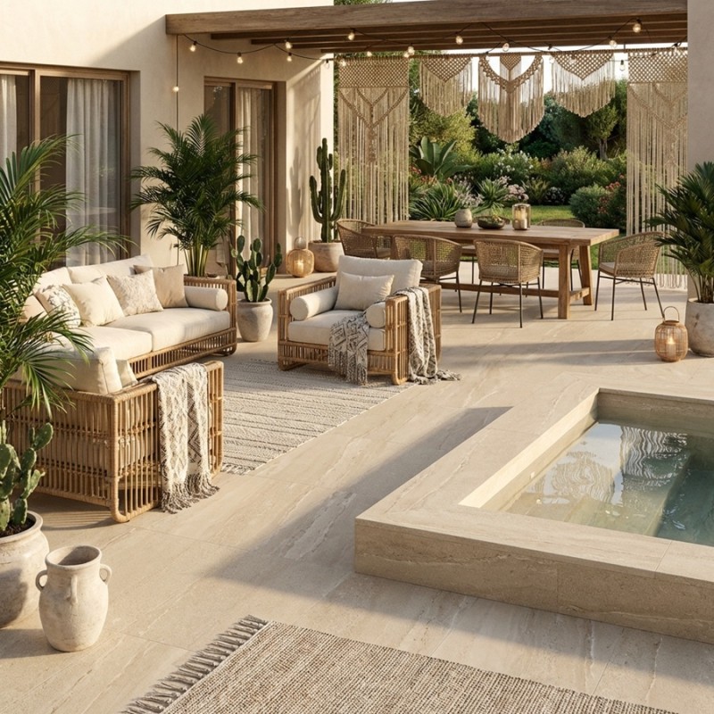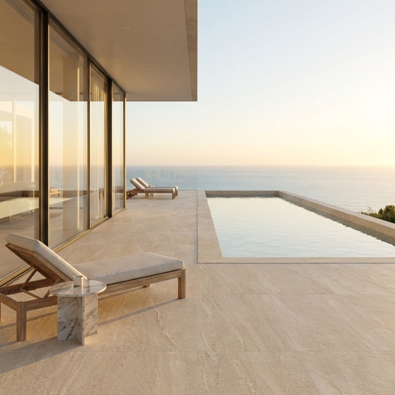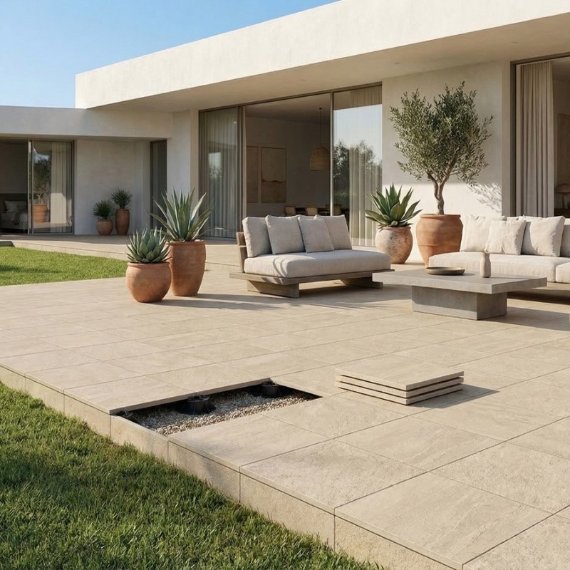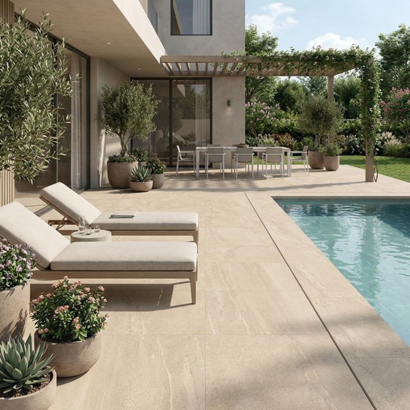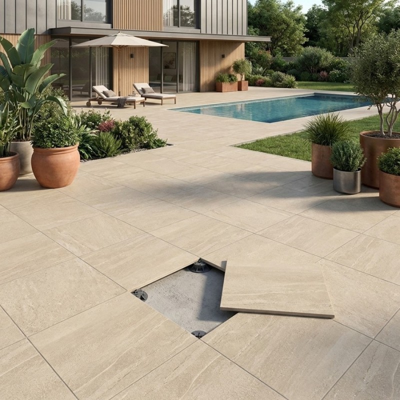 Chaleureuse et naturelle, la dalle sur plots EDDYSTONE Arena 60x60 (beige sable) est parfaite pour une terrasse lumineuse au rendu pierre authentique. Elle est idéale pour un aménagement en dalle sur plots terrasse et s’intègre dans la sélection dalle effet pierre.