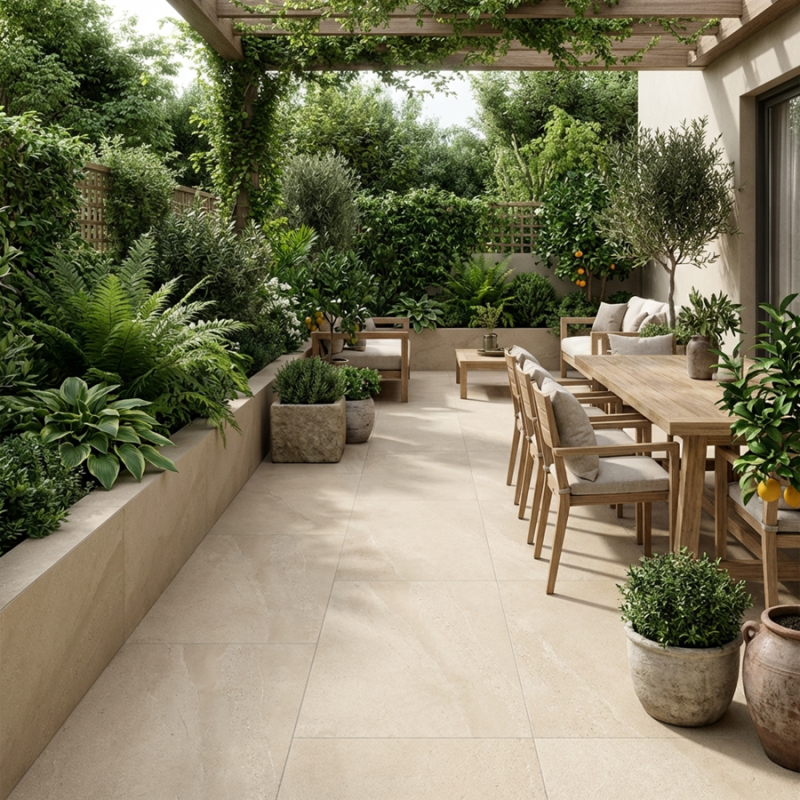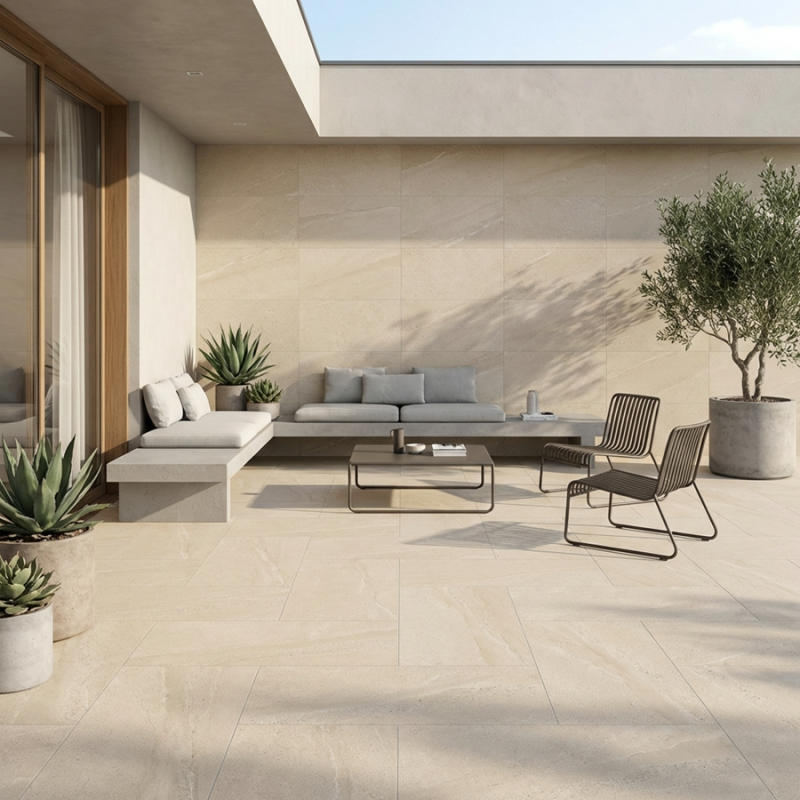 vec sa teinte beige sable Arena, la dalle sur plots EDDYSTONE Arena 60x90 apporte un rendu pierre chaleureux, idéal pour une terrasse naturelle et lumineuse. Elle s’intègre parfaitement dans un aménagement en dalle sur plots terrasse et complète la sélection dalle effet pierre.