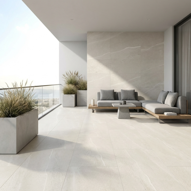 Lumineuse et intemporelle, la dalle sur plots EDDYSTONE Blanco 60x90 apporte un rendu pierre clair parfait pour une terrasse moderne et épurée. Elle s’intègre parfaitement dans un projet de dalle sur plots terrasse et dans la sélection dalle effet pierre.