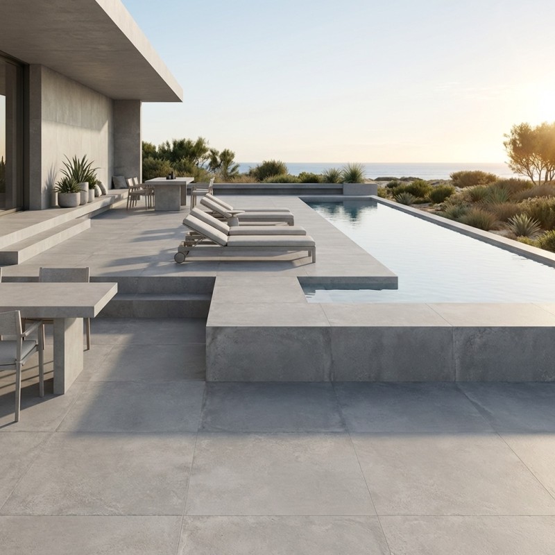Avec ses finitions soignées et son aspect pierre clair, Argon Perla 60x60 cm convient parfaitement aux terrasses modernes. Sa surface antidérapante classée R11 garantit une adhérence fiable, même en conditions humides. Pose facile sur plots, haute résistance à l’usure et rendu lumineux : l’équilibre parfait entre sécurité et esthétique.