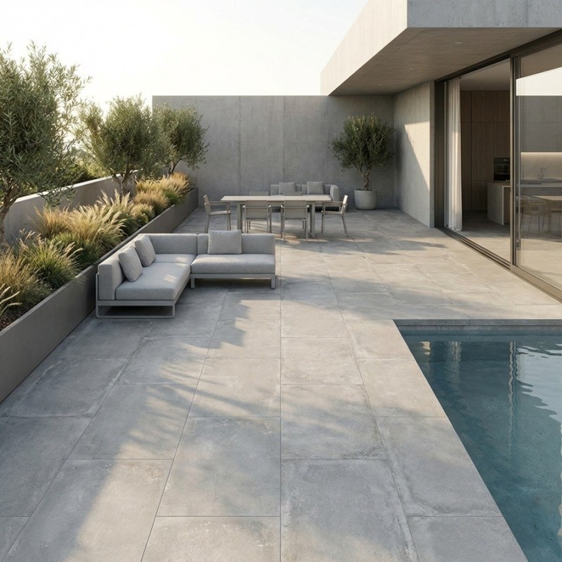 Moderne et épurée, cette dalle Ground Gris 90x90 cm s’impose par son format XXL et son aspect pierre structuré. Parfaite pour l’extérieur, elle bénéficie d’une surface antidérapante R11 et d’une pose facile sur plots. Sa teinte grise intemporelle en fait une dalle à la fois esthétique, résistante et fonctionnelle.