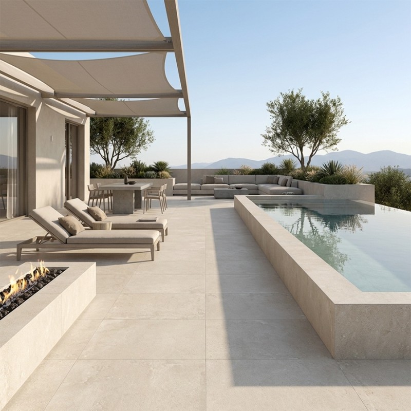 Avec sa teinte beige sable Arena, la dalle GROUND 60x90 apporte une atmosphère chaleureuse et naturelle à tous les extérieurs. Elle est parfaite pour une dalle sur plots terrasse et s’intègre facilement dans la sélection dalle effet pierre. Sa finition antidérapante R11 permet une pose sur plots terrasse et elle existe aussi en formats 60x120 / 90x90 / 60x60.