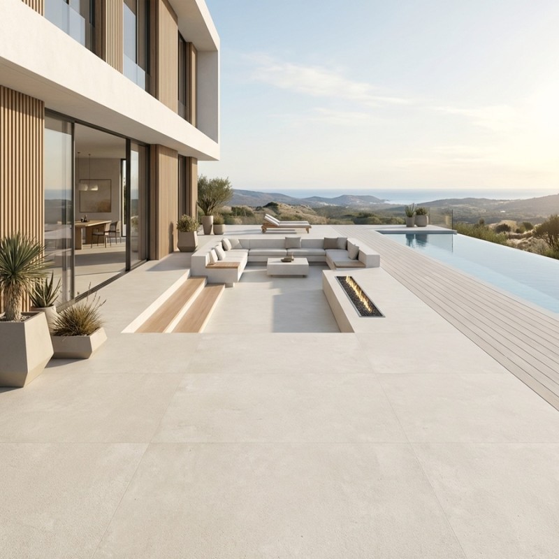 Avec sa teinte Arena (beige sable naturel) et son effet pierre authentique, la dalle GROUND 60x120 réchauffe instantanément une terrasse. Elle est idéale pour un projet de dalle sur plots terrasse et se marie parfaitement avec l’esprit dalle effet pierre. Grâce à sa finition R11, elle est adaptée aux extérieurs et se pose sur plots terrasse. Disponible aussi en formats 60x90 / 90x90 / 60x60.