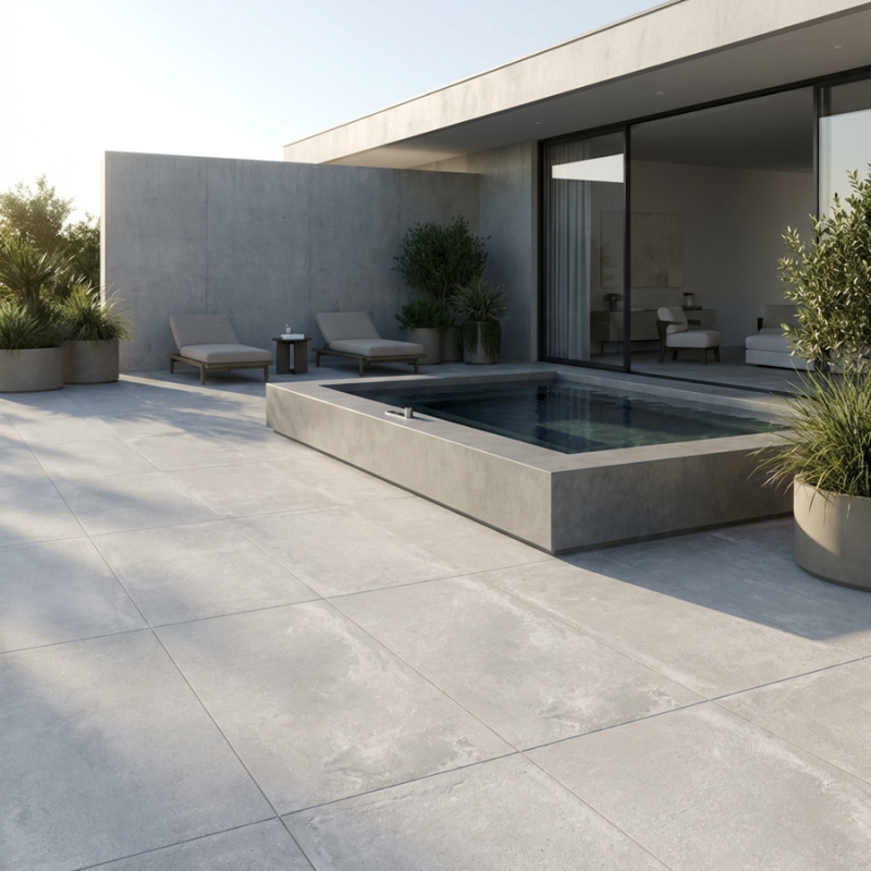 Avec son format rectangulaire 60x120 cm, la dalle Ground Perla offre un design structuré et lumineux. Son effet pierre claire s’intègre harmonieusement dans tout environnement extérieur. Facile à poser sur plots et dotée d’une surface R11 antidérapante, cette dalle combine esthétisme naturel, sécurité et excellente résistance aux intempéries.