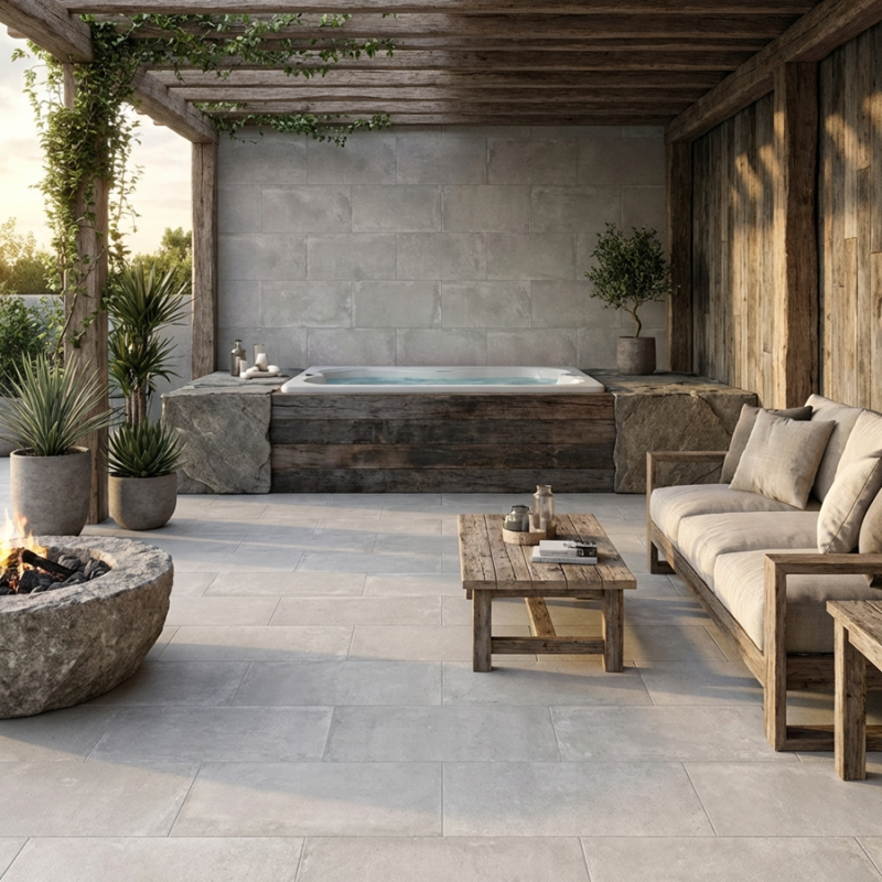 Avec son effet pierre élégant et sa teinte Perla (gris perle doux), la dalle GROUND 60x120 apporte un rendu contemporain et lumineux. Idéale pour un projet de dalle sur plots terrasse, elle s’inscrit naturellement dans la sélection dalle effet pierre. Antidérapante R11, elle est conçue pour une pose sur plots terrasse et existe aussi dans les formats 60x90 / 90x90 / 60x60 en coloris Perla
