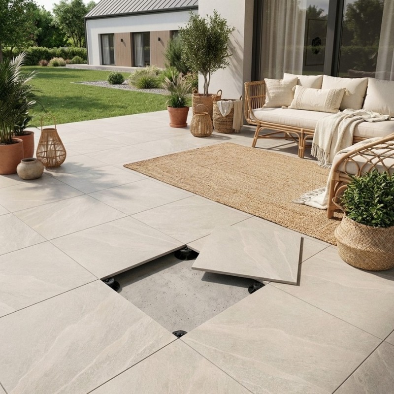 La dalle ARDESIA Bone 60x60 (beige naturel) est idéale pour créer une terrasse chaleureuse, avec un rendu pierre authentique et facile à associer. Elle convient parfaitement à un aménagement en dalle sur plots terrasse et complète l’univers dalle effet pierre. Antidérapante R11, elle est conçue pour une pose sur plots terrasse, et existe aussi en Blanc et Gris.