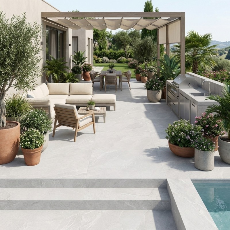 L’Ardesia White 60x60 est parfait pour créer un style extérieur lumineux, moderne et naturel.