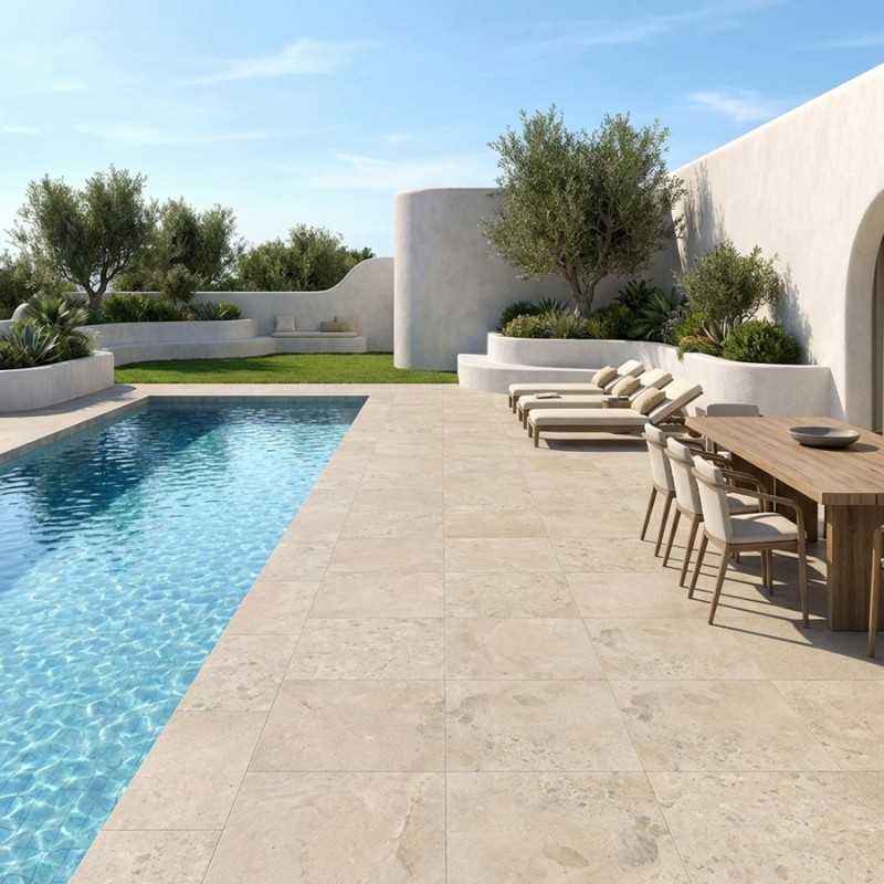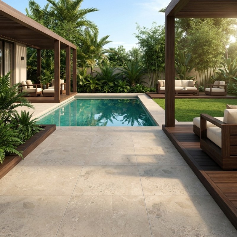 D’une épaisseur de 2 cm, elle s’adapte à la pose sur plots comme à la pose collée, ce qui en fait un produit polyvalent pour terrasse, allée ou contour de piscine. Résistant à l’eau, aux chocs et aux variations climatiques, ce carreau offre une excellente durabilité en extérieur.