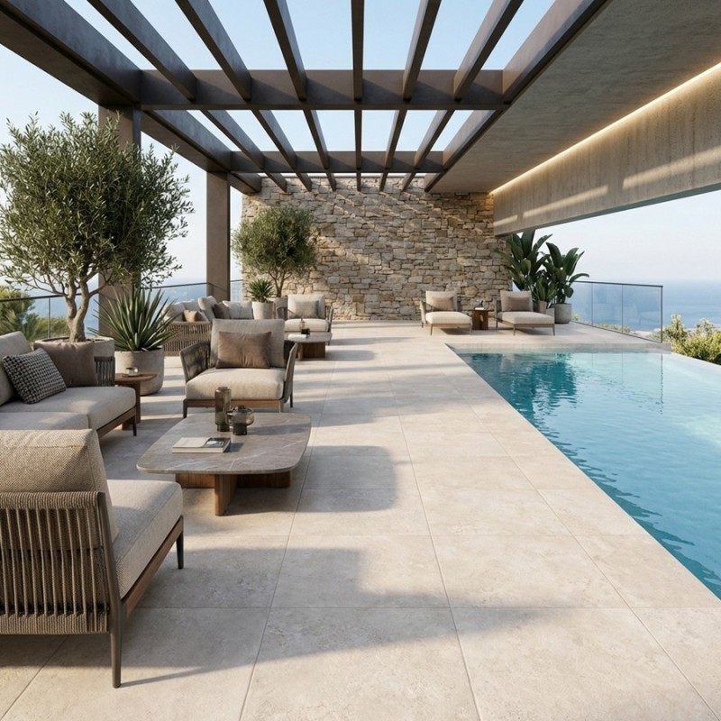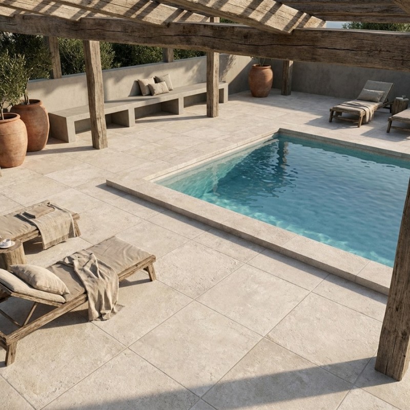 Côté entretien, le carrelage Stratos Cross White ne demande que peu d’efforts. Un nettoyage régulier à l’eau claire suffit dans la majorité des cas. Pour préserver l’aspect naturel de la pierre, l’utilisation d’un produit au pH neutre est recommandée. Ce faible besoin d’entretien en fait un produit très apprécié pour les terrasses résidentielles comme pour les projets professionnels.