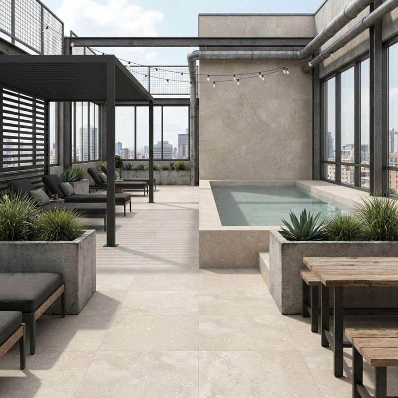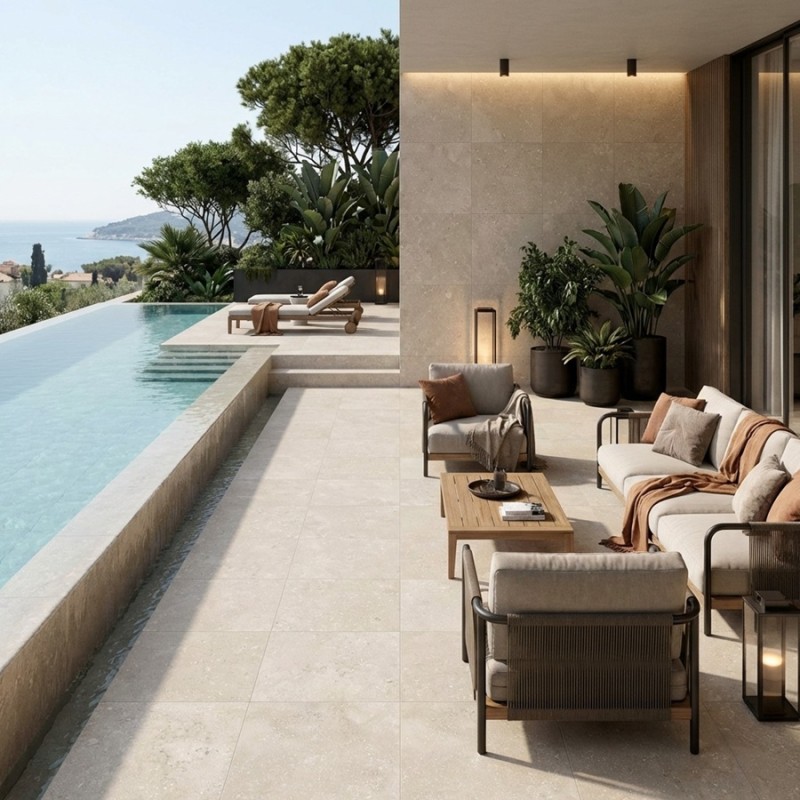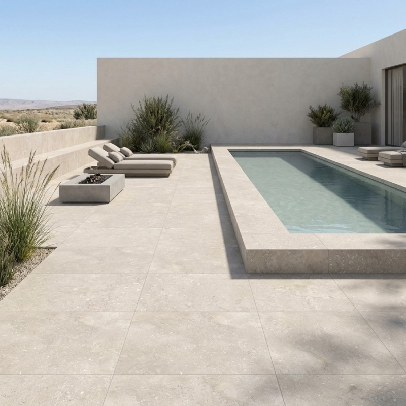 Autour d’une piscine, sa teinte sable apporte douceur et élégance, tout en assurant une surface antidérapante confortable et sécurisante. Une solution idéale pour des projets extérieurs durables, esthétiques et intemporels.