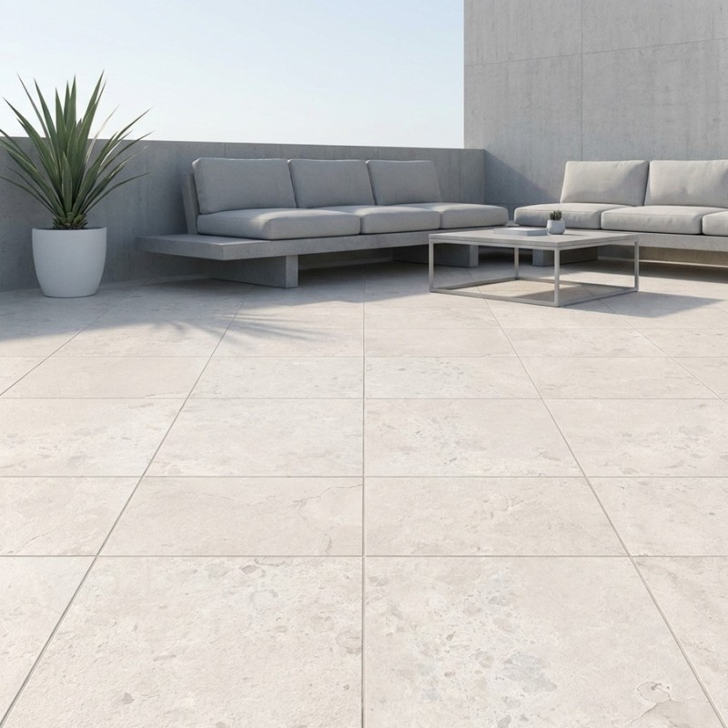 Les dalles sur plots terrasse Breccia White séduisent par leur effet pierre clair et uniforme, idéal pour créer une terrasse extérieure élégante et intemporelle. Leur grand format 100x100 est parfaitement adapté à une pose sur plots, avec la possibilité d’une pose collée selon les contraintes du projet. Existe en version 60x60 et 60x90.