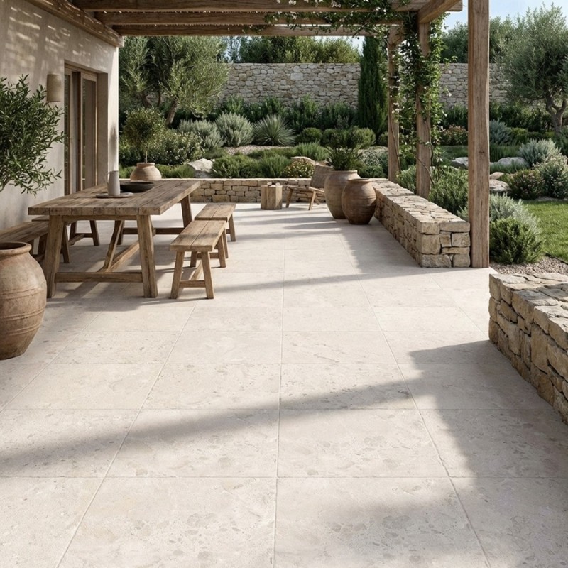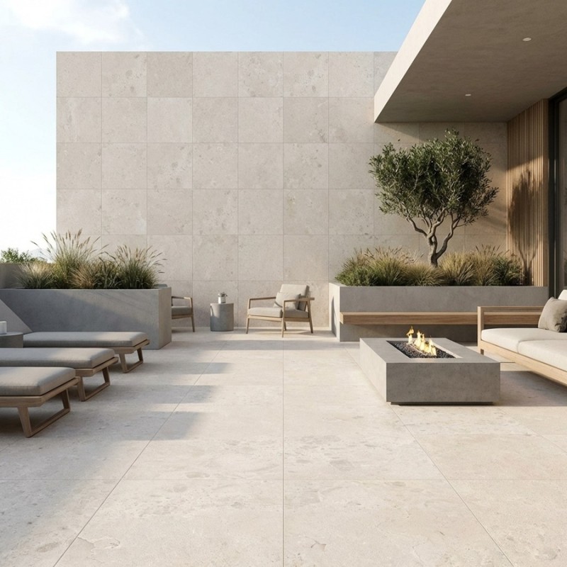 Autour d’une piscine, leur teinte claire valorise la lumière et l’eau, tout en assurant une surface antidérapante confortable et sécurisante.