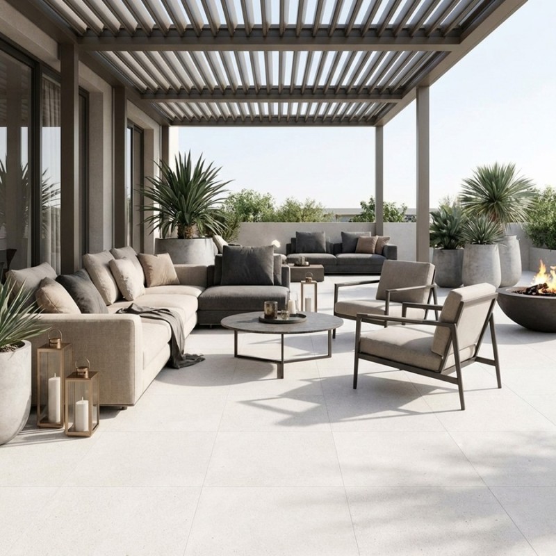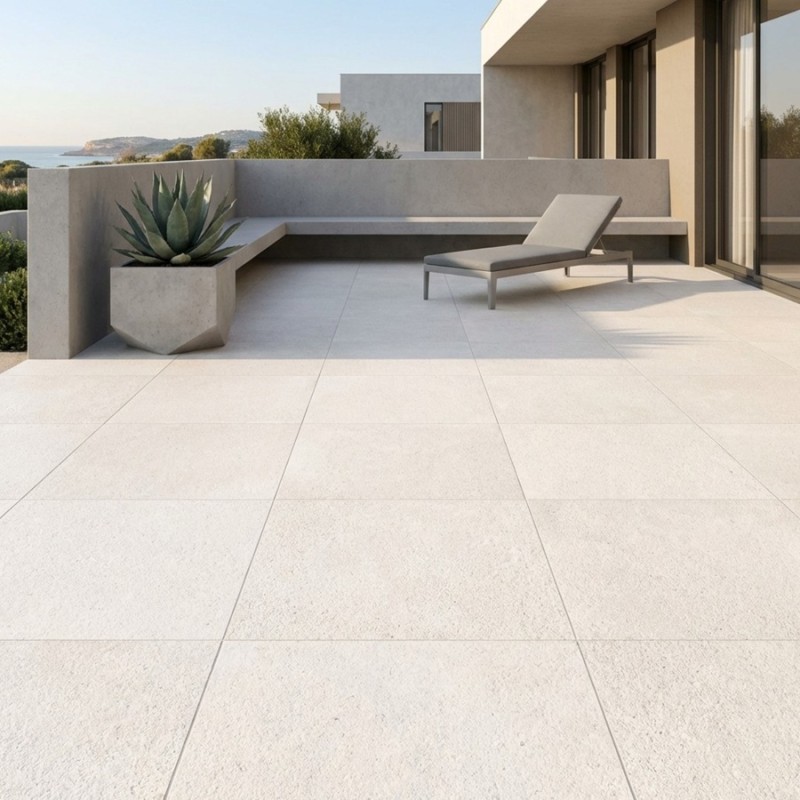 La dalle sur plot terrasse Portland Blanco est idéale pour créer une terrasse moderne, lumineuse et élégante. Elle se marie parfaitement avec du bois clair, du béton brut ou des éléments en aluminium, et met en valeur les espaces végétalisés.