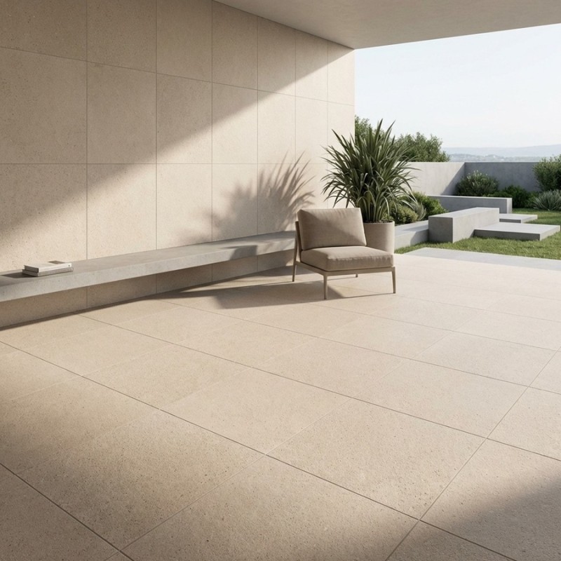 Avec sa teinte pierre ivoire, douce et naturelle, la dalle terrasse sur plot Portland Marfil évoque les pierres claires méditerranéennes et apporte une atmosphère chaleureuse aux espaces extérieurs. Son rendu minéral subtil illumine les terrasses, les jardins structurés et les abords de piscine, tout en conservant un style intemporel.