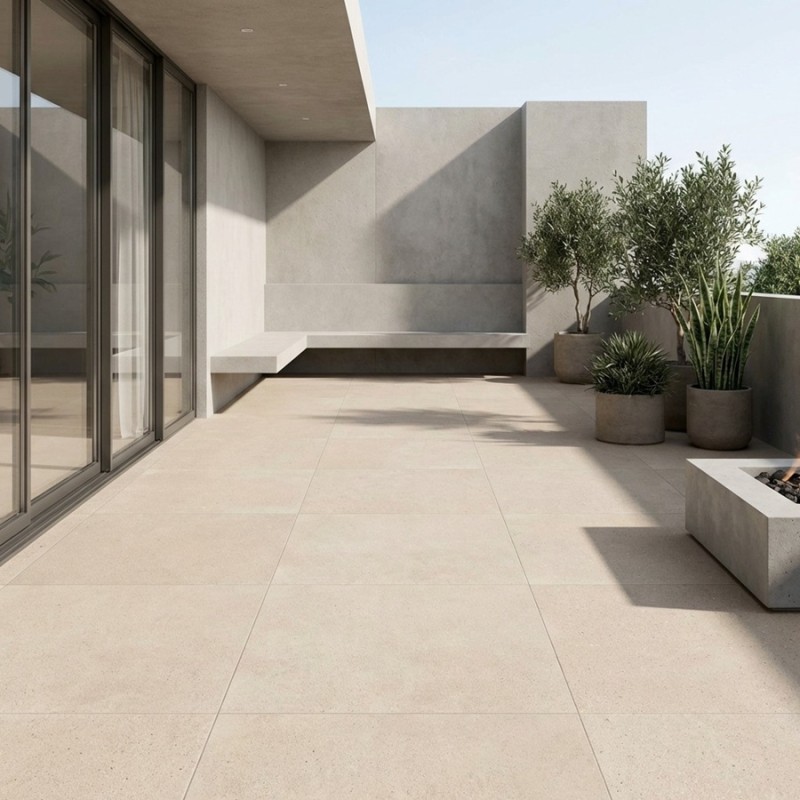 La dalle terrasse sur plot Portland Marfil est idéale pour créer une terrasse élégante et chaleureuse, associée à du bois clair, du travertin ou des éléments en aluminium. Elle s’intègre parfaitement dans des ambiances méditerranéennes, contemporaines ou naturelles.