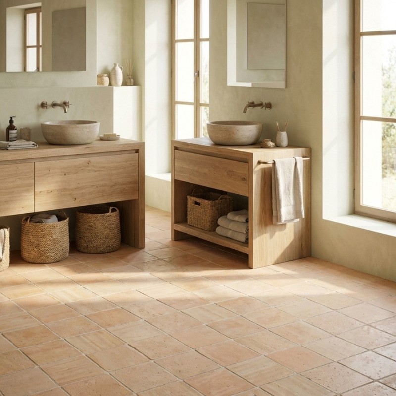 Le carrelage effet terre cuite ROOTS SAND, avec sa teinte beige sable, est parfait pour apporter une note chaleureuse et naturelle à votre décoration. Son aspect authentique et sa texture subtilement irrégulière évoquent les sols des maisons de campagne, créant une atmosphère conviviale et intemporelle. Il se prête idéalement aux cuisines, salons, ainsi qu'aux espaces extérieurs comme les terrasses.