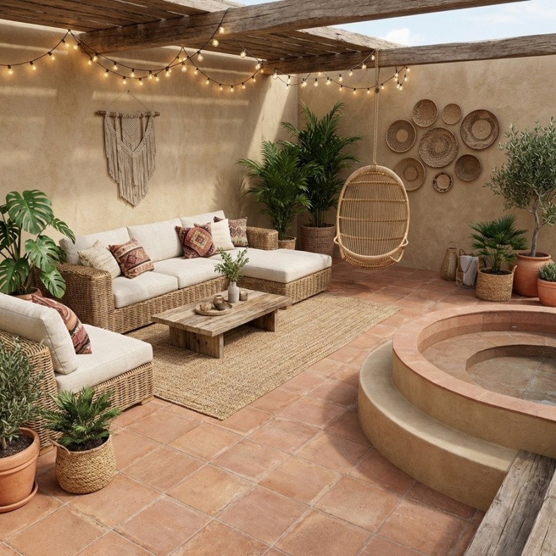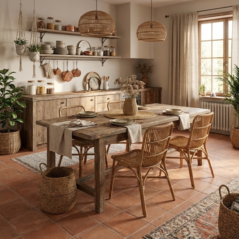 Dans un intérieur au style rustique, esprit campagne ou maison de charme, associez-le à des poutres apparentes, des meubles en bois brut et des murs clairs.En extérieur, il sublime une terrasse esprit Provence avec des jarres en terre cuite, du mobilier en fer patiné et une végétation aromatique (olivier, lavande, romarin) pour une ambiance chaleureuse et conviviale.