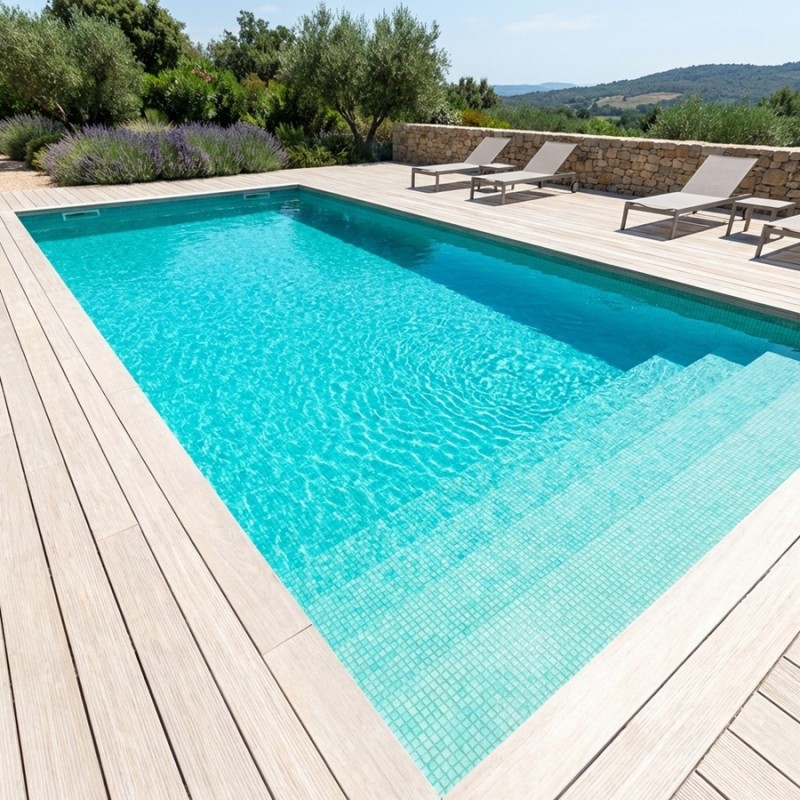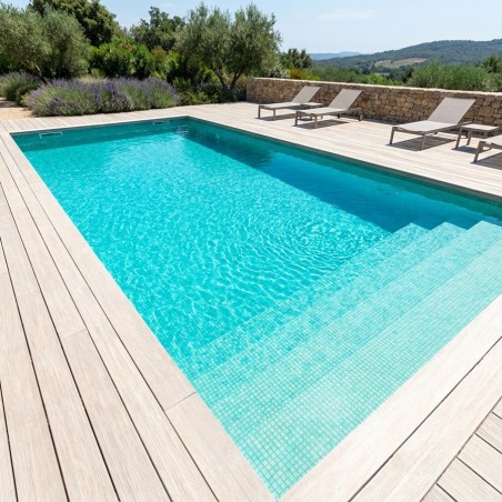 En plus d'ajouter une touche de style et de sophistication à votre piscine, la mosaïque PS 40 couleur vert clair donne une superbe couleur d'eau, créant ainsi un environnement de baignade attrayant et relaxant. Avec son aspect élégant et moderne, cette mosaïque de piscine peut être utilisée pour créer une variété de motifs et de designs qui conviendront à tous les goûts et tous les styles de piscine.