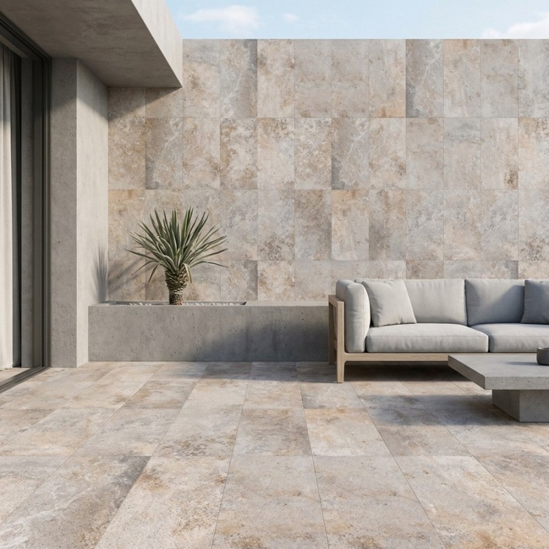 Adapté aussi bien en revêtement de sol qu’en mur décoratif, ce carreau antidérapant R11 s’intègre parfaitement dans les espaces extérieurs tels que les terrasses, abords de piscine ou zones humides.