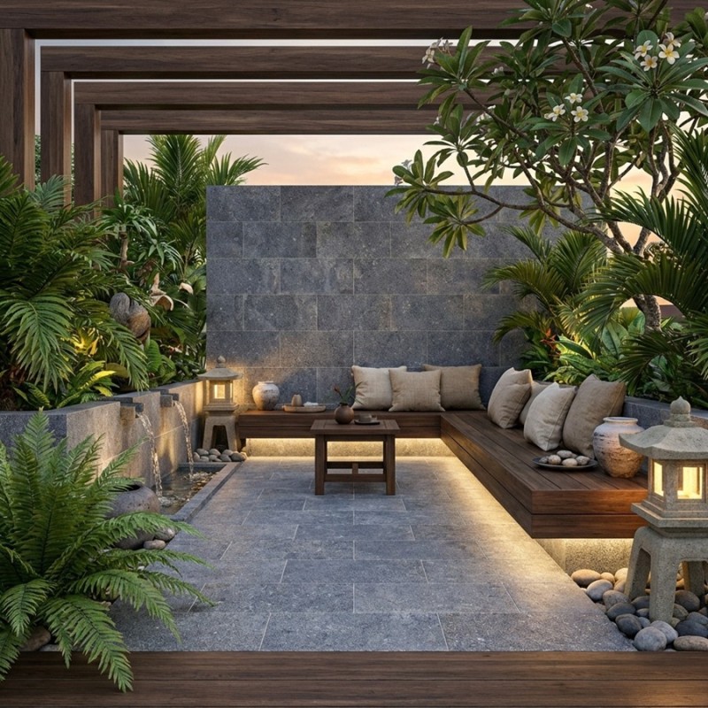 Grâce à son aspect pierre légèrement texturé, il crée une atmosphère apaisante, idéale pour les espaces intérieurs et extérieurs inspirés du Bali naturel.