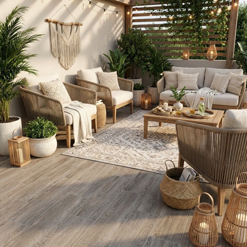 Conçu en grès cérame, ce revêtement allie esthétique, robustesse et facilité d’entretien, sans les contraintes du bois véritable.