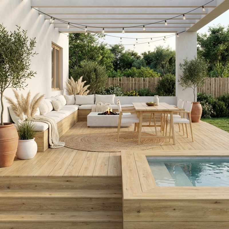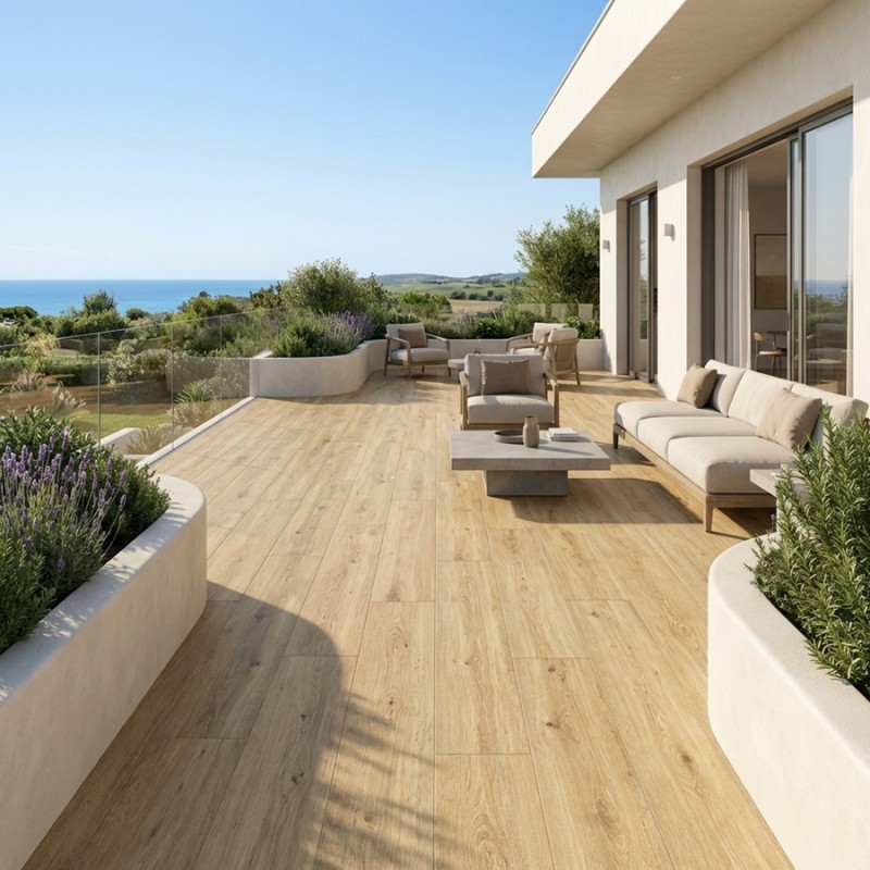 Conçu en grès de cérame, ce matériau est reconnu pour être résistant, durable et facile d’entretien, sans les contraintes du bois naturel.
