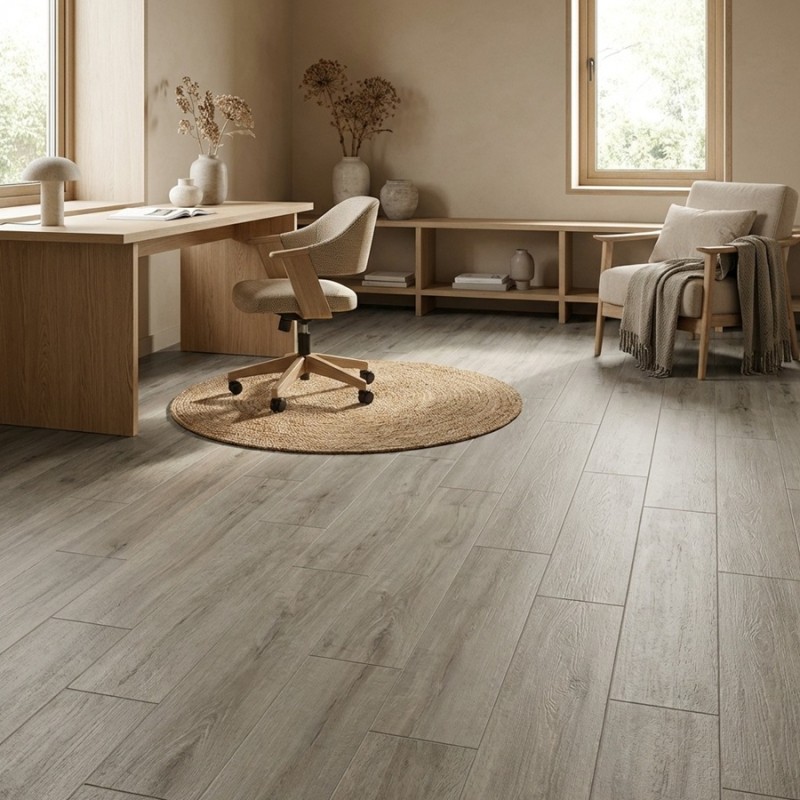 La sous-couche intégrée apporte un confort supplémentaire tout en améliorant l’isolation phonique et thermique de vos pièces. Ce sol est résistant à l’eau, ce qui le rend parfait pour des espaces comme les cuisines, salles de bain ou couloirs. Sa surface mate imite l’aspect naturel du bois tout en étant facile à entretenir, offrant une grande résistance aux rayures et à l’usure quotidienne.