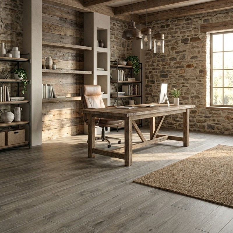 Un sol effet bois clair d’une finesse rare pour une atmosphère apaisante.