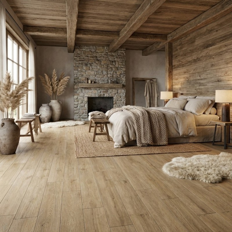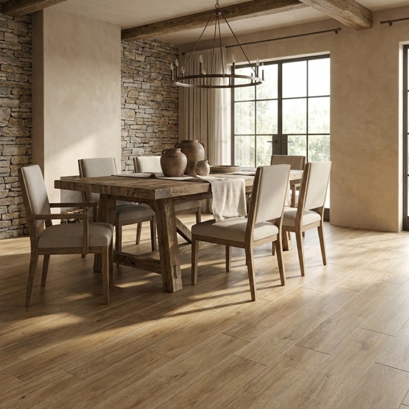 Pour un intérieur raffiné, optez pour ce sol effet bois de couleur brune.