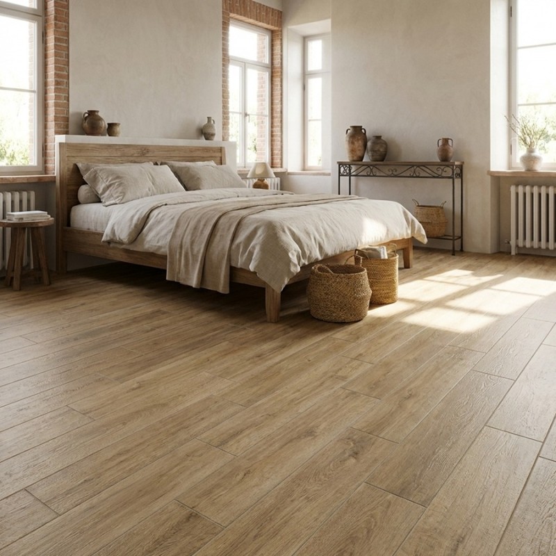 La sous-couche intégrée garantit un confort optimal et améliore l'isolation phonique et thermique, tout en offrant une surface agréable sous les pieds. Ce modèle est également résistant à l’eau, ce qui le rend idéal pour les salles de bain, les cuisines ou les pièces à fort passage. Sa finition mate et texturée imite parfaitement le bois, apportant une touche naturelle et raffinée à vos sols.