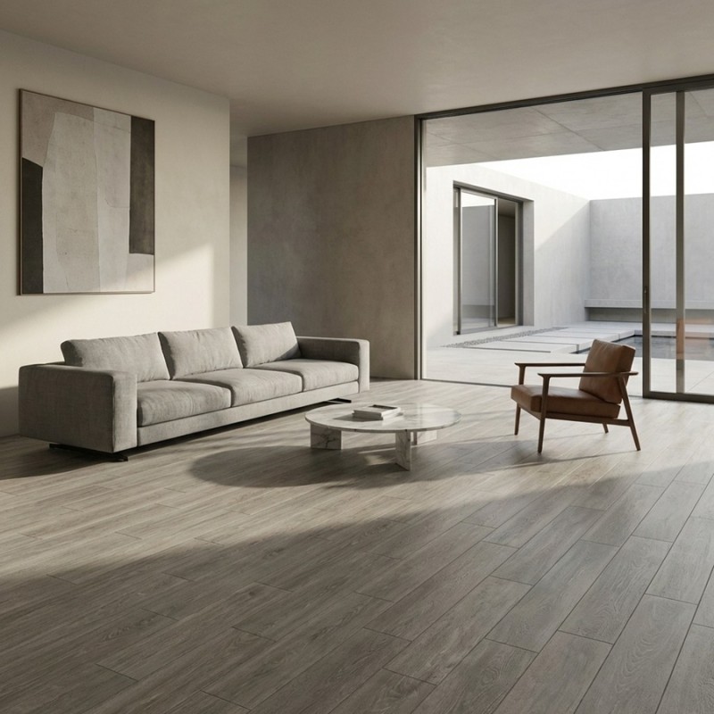 Ce sol effet bois apporte élégance et sérénité à chaque pièce.