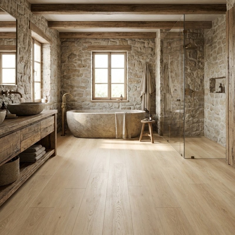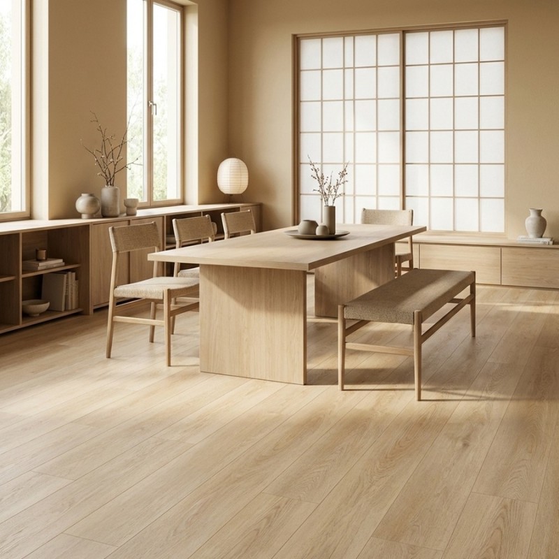 Pour une pièce à l’élégance apaisante, adoptez ce sol bois couleur claire.