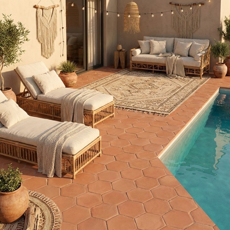 Découvrez le charme authentique des tomettes hexagonales en terre cuite.