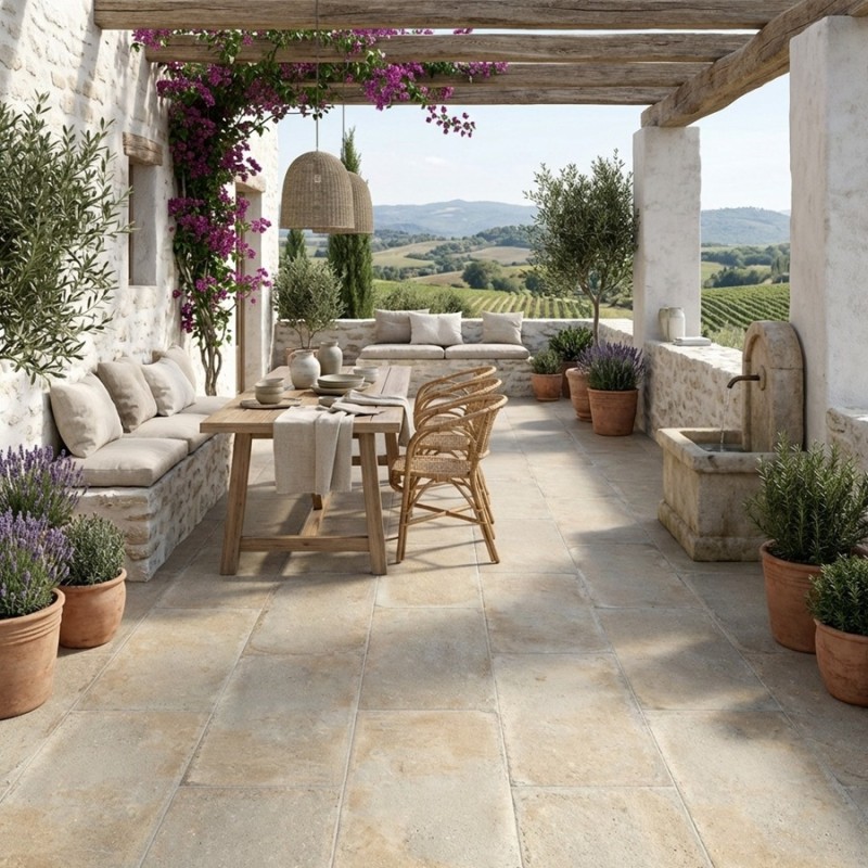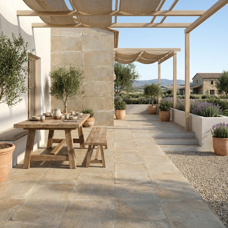 Associez-les à des meubles en bois clair et des accessoires en métal ou en céramique pour une ambiance naturelle et lumineuse. Ajoutez des plantes et des éléments décoratifs pour créer un espace extérieur à la fois sécurisé et agréable. Les CASALE ECRU antidérapantes sont idéales pour sublimer vos terrasses.