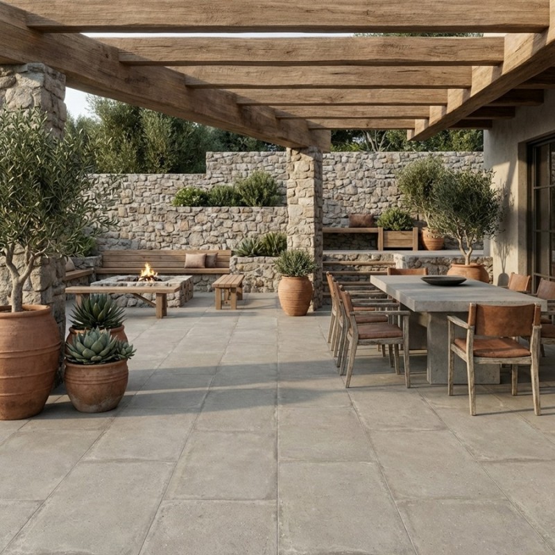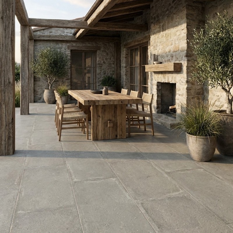 Associez-les à des meubles épurés et des accessoires en métal ou en bois clair pour une ambiance moderne et accueillante. Des plantes en pot et des textiles légers renforceront l’atmosphère naturelle et contemporaine de votre terrasse. Les CASALE CENERE antidérapantes sont idéales pour transformer vos espaces en lieux sécurisés et élégants.