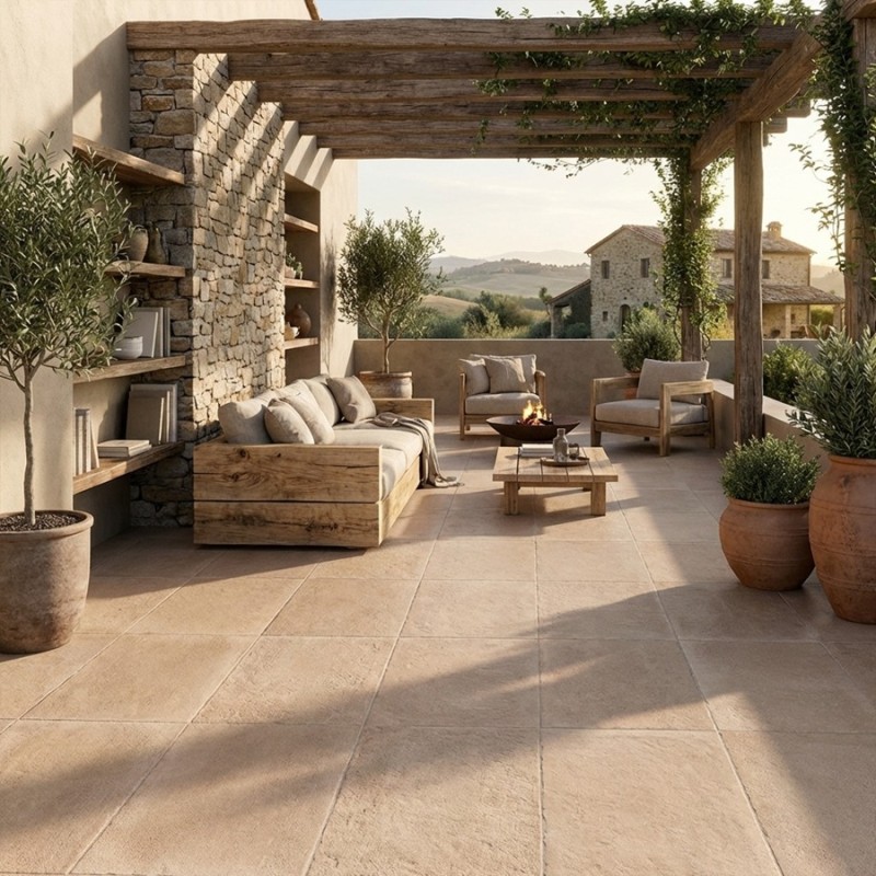 Associez-les à des meubles en bois brut et des accessoires en métal pour une ambiance chaleureuse et authentique. Ajoutez des plantes pour compléter l’ensemble et renforcer l’effet naturel de votre espace extérieur. Les CLOS TERRA antidérapants transforment vos terrasses en lieux accueillants et sécurisés.