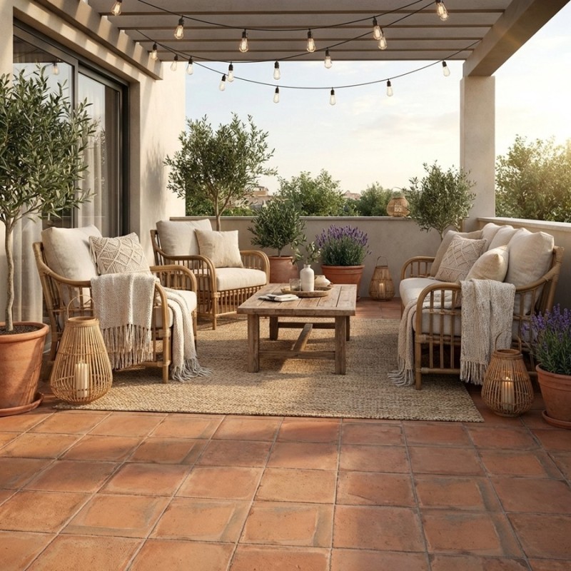 Le carrelage Caldera Terra 20x20 est idéal pour créer une ambiance méditerranéenne, rustique ou bohème. Il s’associe parfaitement avec des matériaux naturels comme le bois, la pierre ou la terre cuite, pour un espace extérieur chaleureux et convivial.